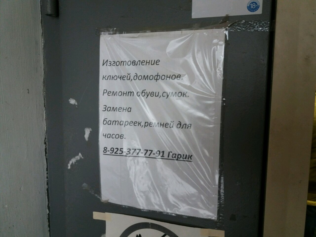 Супер мастер! Всегда на месте, строго с 9 до 21. Очень хорошо шарит в ключах. Обувь делает, но только ту, которая еще послужит, поэтому всегда клиентам говорит правду и посоветует правильно! В общем однозначно красавчик!